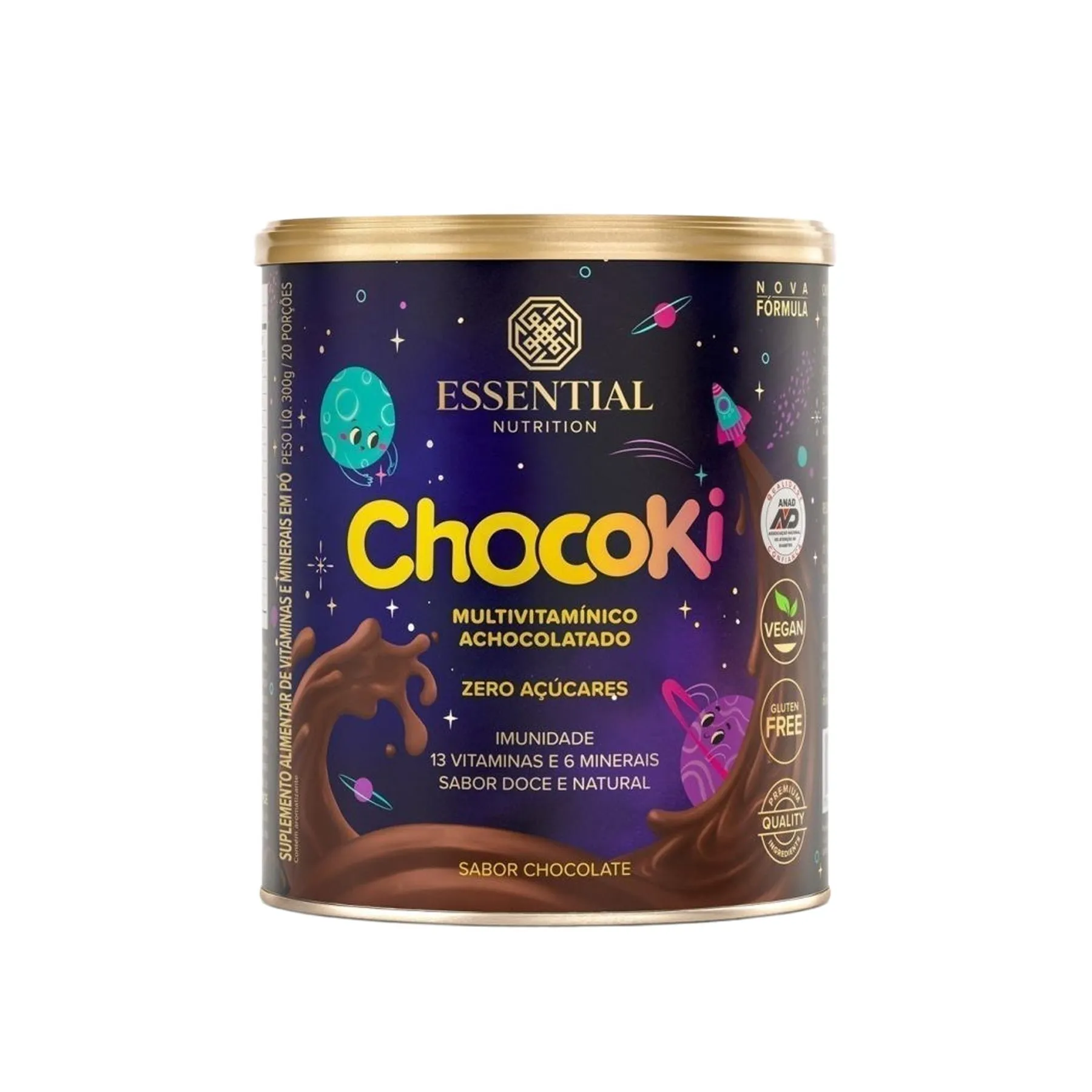 CHOCOKI da ESSENTIAL - é um delicioso multivitamínico na forma de achocolatado, com puro cacau, vitaminas ativas e minerais quelados. Ideal para substituir os achocolatados tradicionais com alto teor de açúcar e pobres em nutrientes!Com apenas 24kcal por porção (15g), ChocoKI é uma opção para quem busca uma alimentação mais nutritiva, podendo também ser consumido por veganos e vegetarianos. O sabor e os poderes nutritivos de ChocoKI são incomparáveis.